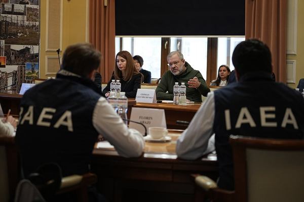 Міністр енергетики України Герман Галущенко зі своєю заступницею Світланою Гринчук під час зустрічі з головою МАГАТЕ Рафаелем Гроссі. Київ, 6 лютого 2024 року. Getty Images/Energoatom
